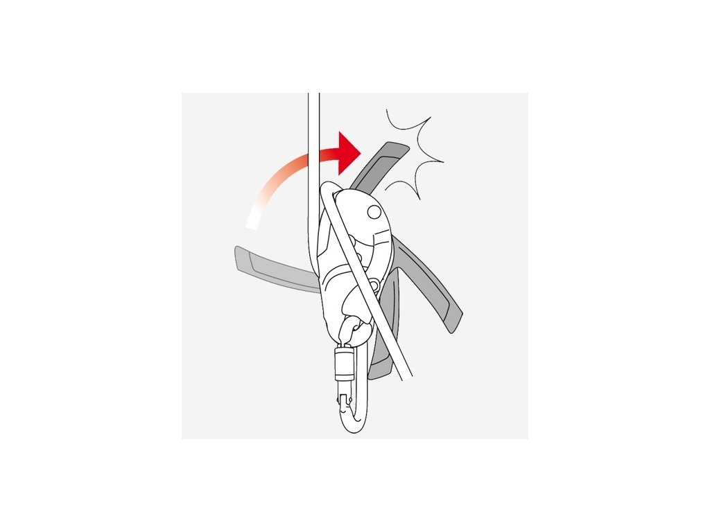 bezpečnostní západka na pohyblivé bočnici napomáhá zabránit pádu brzdy a usnadňuje instalaci lana a míjení postupových kotvících bodů