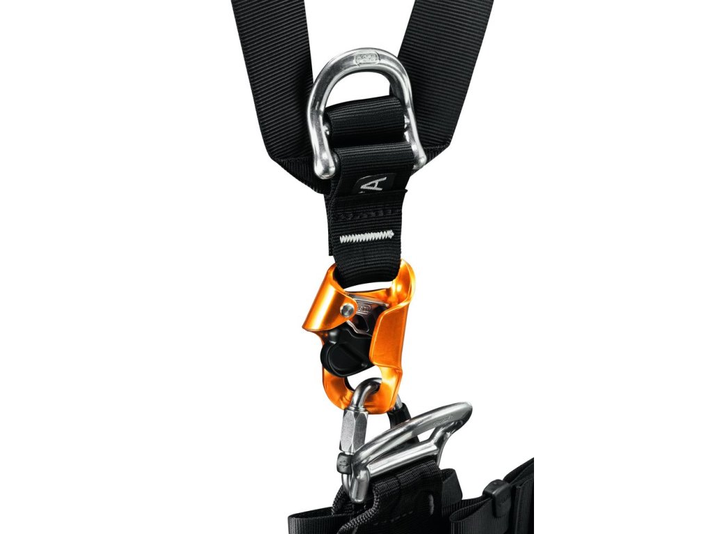 • Přední připojovací bod rozděluje váhu rovnoměrněji mezi pás a nožní popruhy při práci v zavěšení