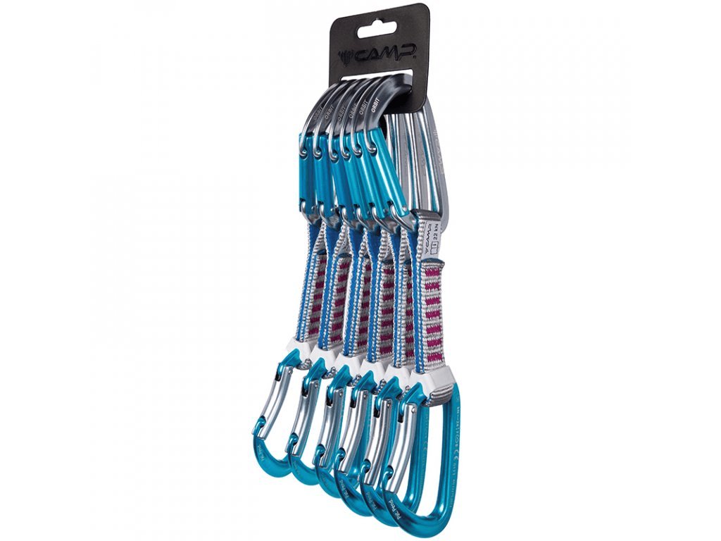 Sada 6 ks dámských expresek s kombinací plných karabin CAMP Orbit a 16 mm nylonovou smycí v délce 12 cm.