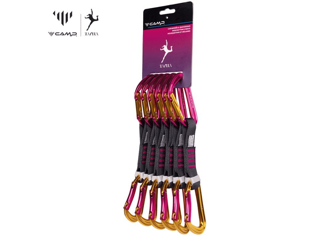 Sada 6 ks dámských expresek s kombinací plných karabin CAMP Orbit a 16 mm nylonovou smycí v délce 12 cm.