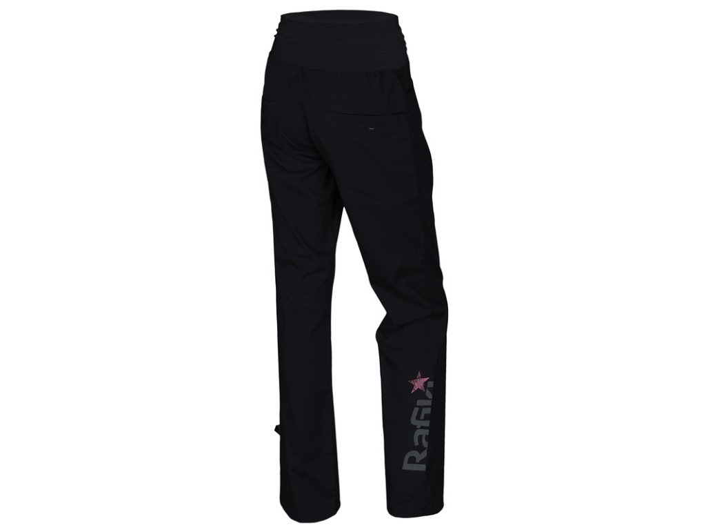 Dámské lezecké pohodlné kalhoty Rafiki Etnia II s vysokým pružným pasem vás nebudou omezovat v pohybu.