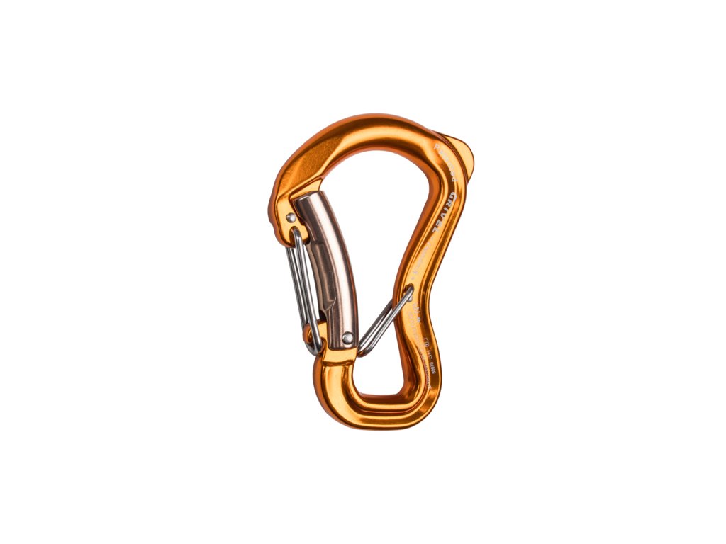 Velmi bezpečná karabina s dvojitým zámkem vhodná pro jištění.