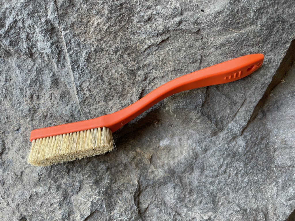 Plastový lezecký kartáček Lapis s kančími štětinami je mezi lezci známý po celém světě.