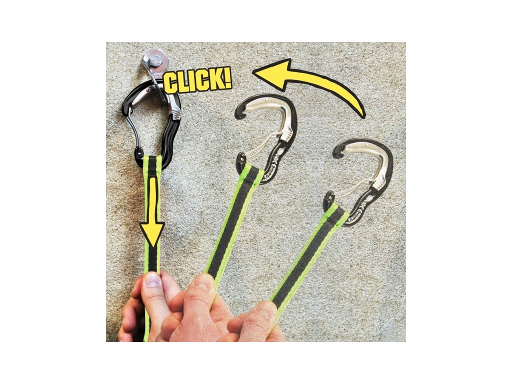 Panic System se skládá z jedné karabiny a 35 cm dlouhé, tuhé smyce. Karabina se dá zajistit tak, aby zámek zůstal v otevřené poloze a po cvknutí se sám zaklapne.