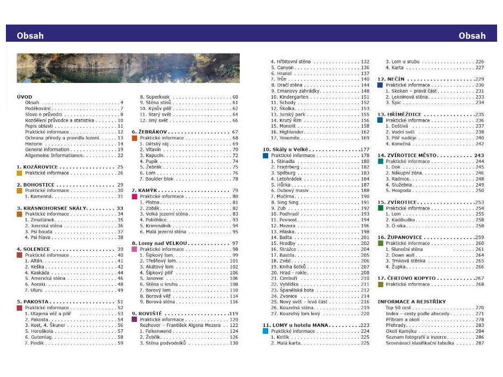 U každého sektoru je uvedena krátká charakteristika včetně praktických informací a detailního nákresu přístupu. U každé skály je pak topo se zakreslením všech cest. Každý výstup je stručně popsán a je u něj uvedena délka cesty a počet fixního jištění. Kniha též obsahuje mnoho fotografií, na kterých je řada známých tváří nejen z Vltavské žuly nebo je na nich dobře vidět prostředí a materiál, po kterém se leze. Kromě popisů oblastí a cest je zde také rozhovor s jedním z nejdůležitějších objevitelů Vltavské žuly – Frantou Mezerou, a povídání o historii zdejšího lezení včetně nejnovější historie nejtěžších cest.