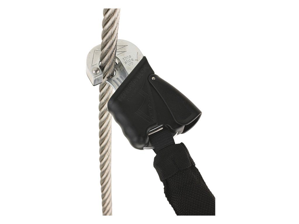 Lehce ovladatelný trhací tlumič pádů na zajištěné cesty Via ferrata.