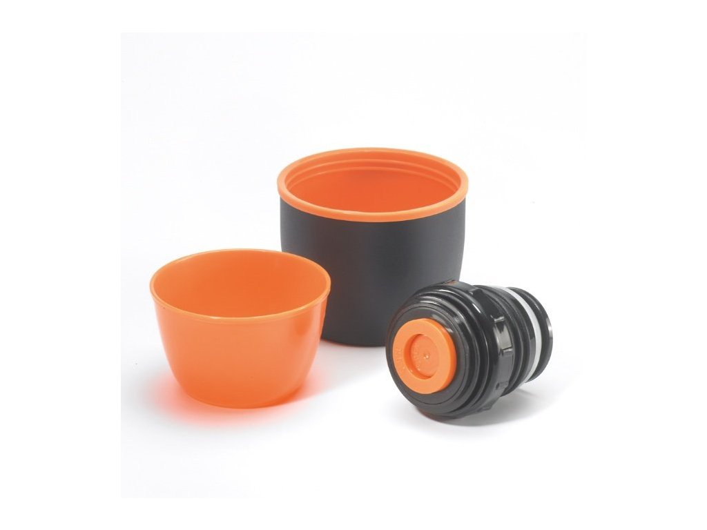 Každá termoska obsahuje 2 hrnky a 2 uzávěry – jeden klasický šroubovací a druhý rychlouzavírací pouze na stisk knoflíku.