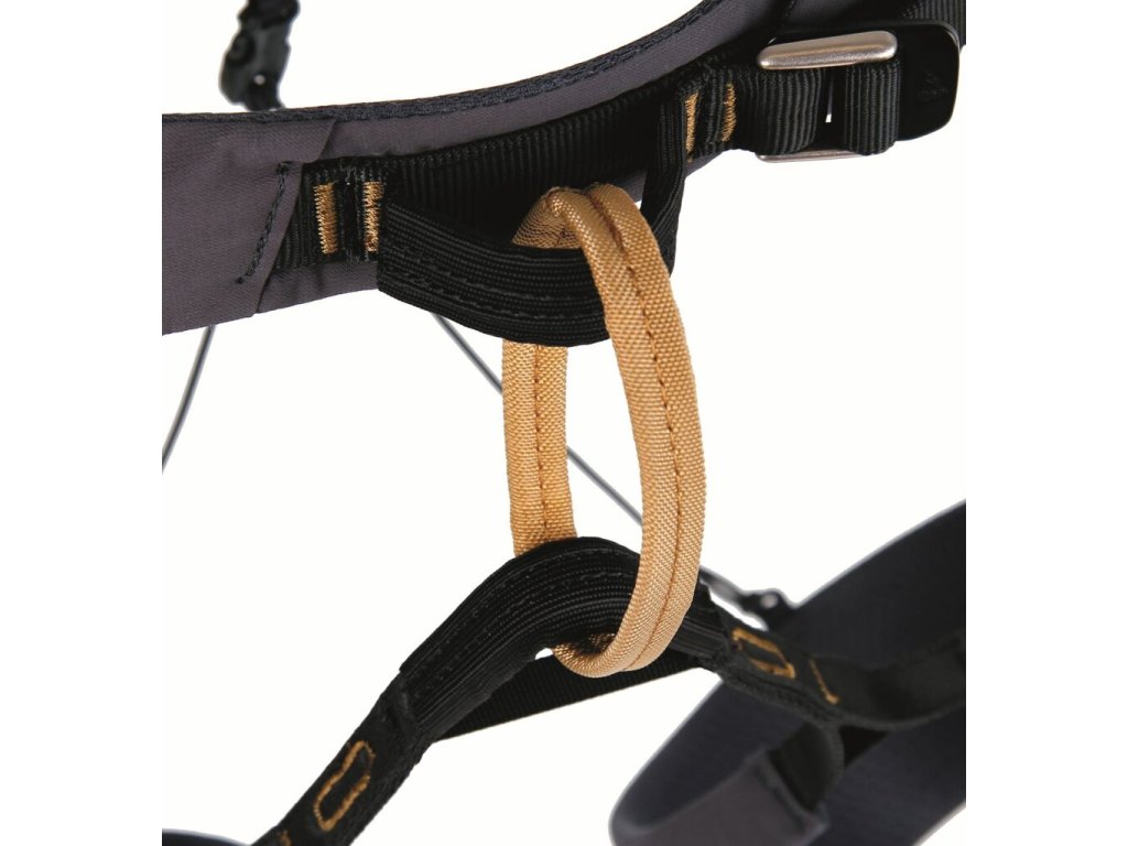 Spojení bederního pásu a nohaviček je zajištěno pomocí kulaté smyčky. Sedák má čtyři materiálová oka, kterou jsou umístěna na spodní hraně pásu pro kompatibilitu s batohem a čtyři oka na šrouby do ledu.