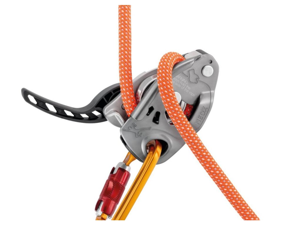 Nedoporučujeme pro začínající lezce, není to samoblokovací zařízení, neustále je nutné držet volný konec lana v ruce