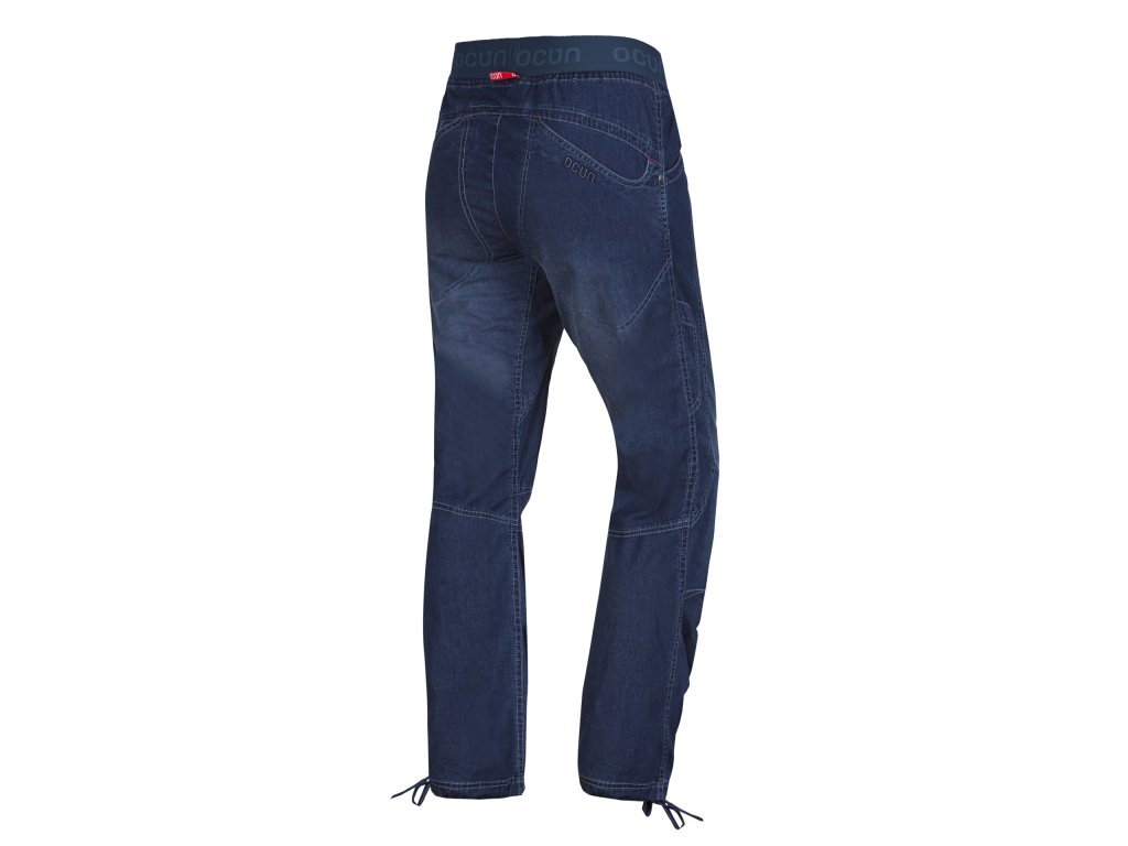 Funkční lezecké kalhoty Mánia Jeans jsou lehké, pružné a tvarově stálé. Snadno se udržují a jsou velice příjemné na dotek. Jsou vybavené řadou praktických lezeckých detailů, jakými jsou přední i zadní hluboké kapsy, boční kapsička na kartáček nebo stahovací nohavice.