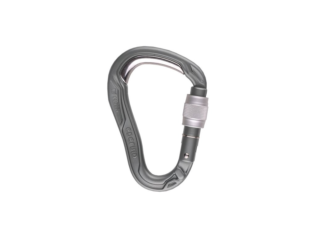 Malá šroubovací karabina vhodná na odsedku, nošení materiálu nebo postupové jištění.