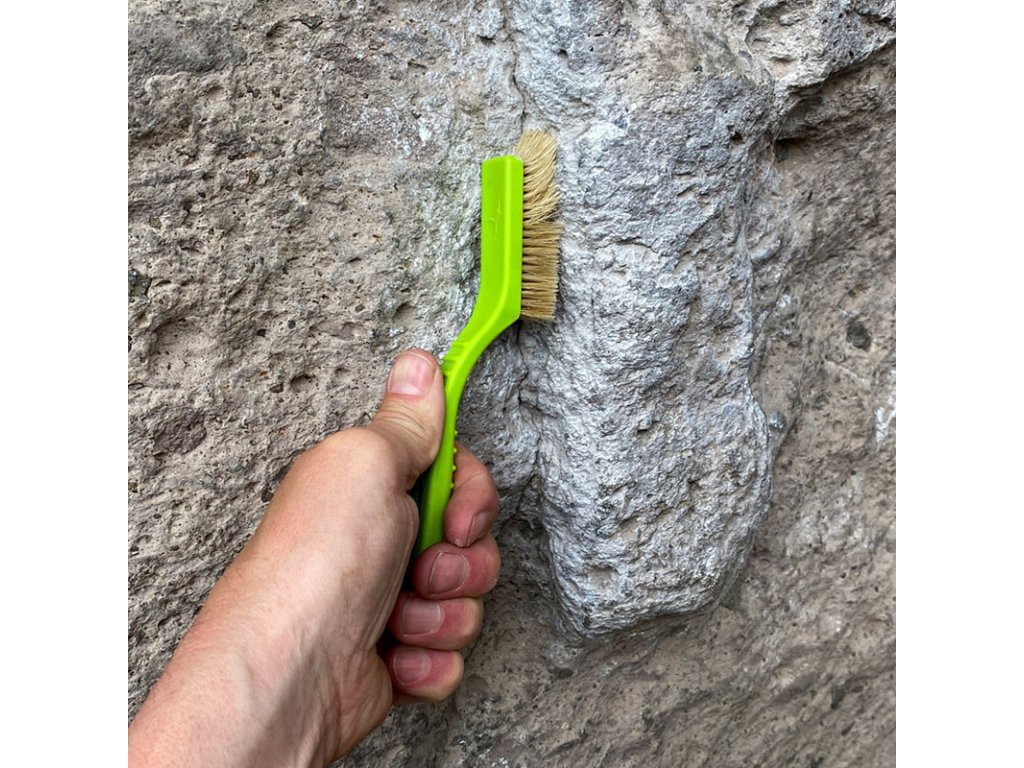 Plastový lezecký kartáček Lapis s kančími štětinami je mezi lezci známý po celém světě.