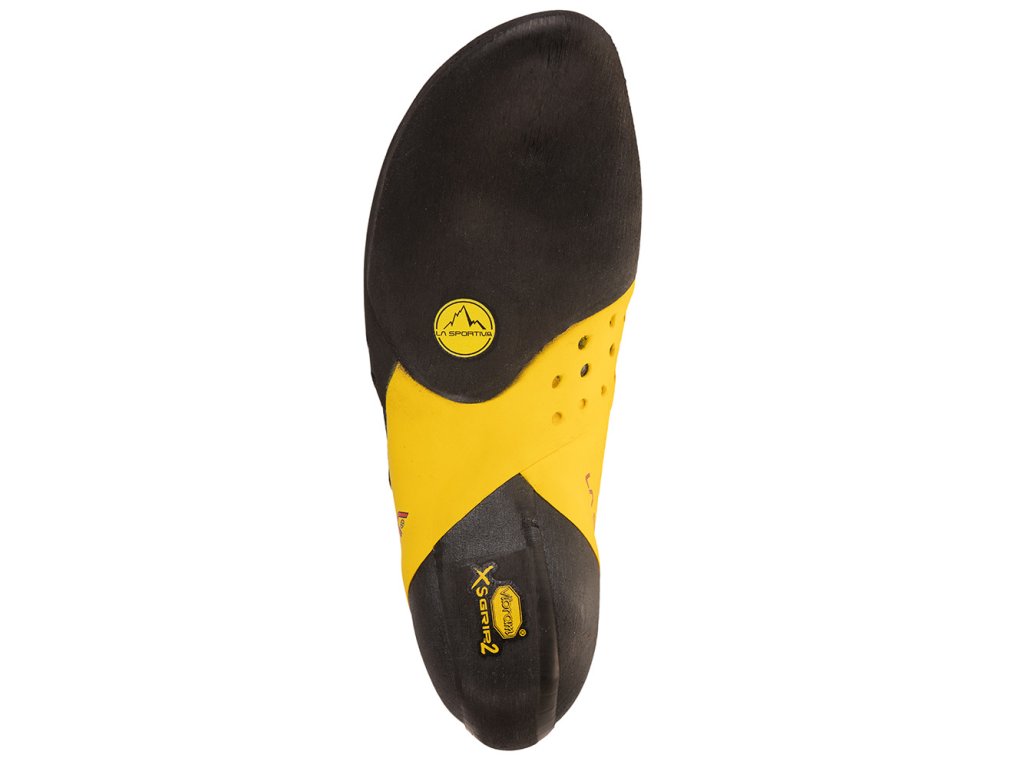 Výhodou boty je velmi přesná špička, dokonale anatomická pata a ta nejlepší podešev. Zapínámí je řešeno skrze tříbodový velcro pásek pro přesnou fixaci na nártu. Pogumovaná horní strana špičky s výrazným vrubováním, usnadňuje hákování v převisu a těsná pata drží botu při patování.