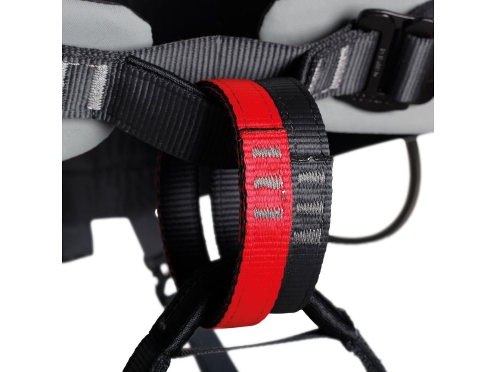 - pas je vybaven dvěma sponami: Rock&Lock spona zajišťuje rychlé a plynulé nastavení, klasická provlékací spona umožňuje úvazek perfektně vycentrovat